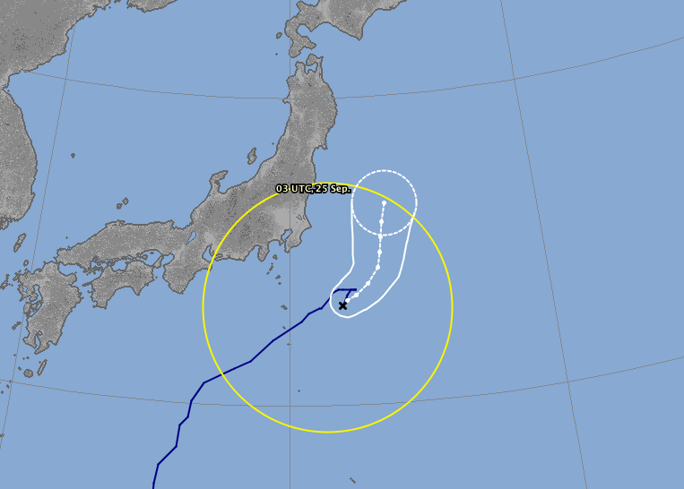 A esta hora avanzaba hacia el noreste con la posibilidad de generar este viernes 25 fuertes lluvias en la región de Tohoku. Se ha pedido precaución ante deslizamientos, desborde de ríos, tormentas y olas altas.