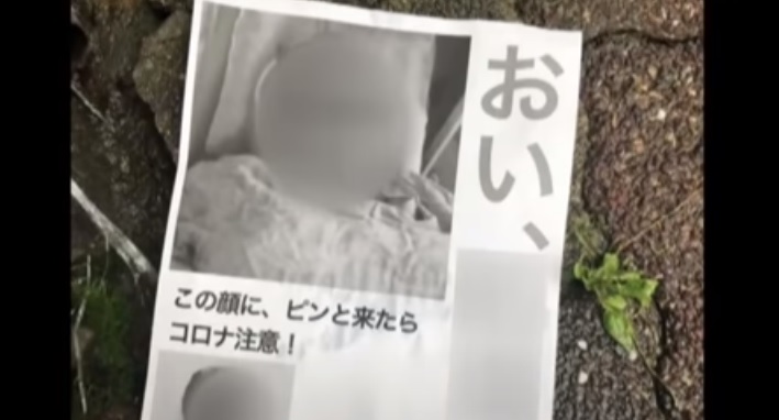 En los afiches aparecían dos fotografías de un hombre en la treintena y un texto que indicaba que tenía coronavirus.