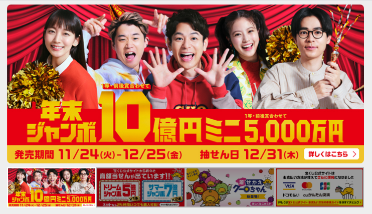 Hoy 24 de noviembre comenzó la venta de la Lotería Jumbo de fin de año 「年末ジャンボ宝くじ Nenmatsu Jumbo Takarakuji」en todo Japón con premios que llegan a 1.000 millones de yenes.