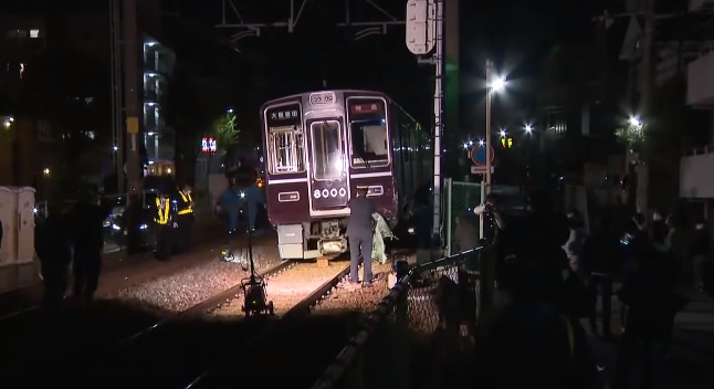 El lunes, alrededor de las 7:40 de la noche, el primer vagón de un tren de la línea Hankyu Kobe descarriló tras chocar con la camioneta.