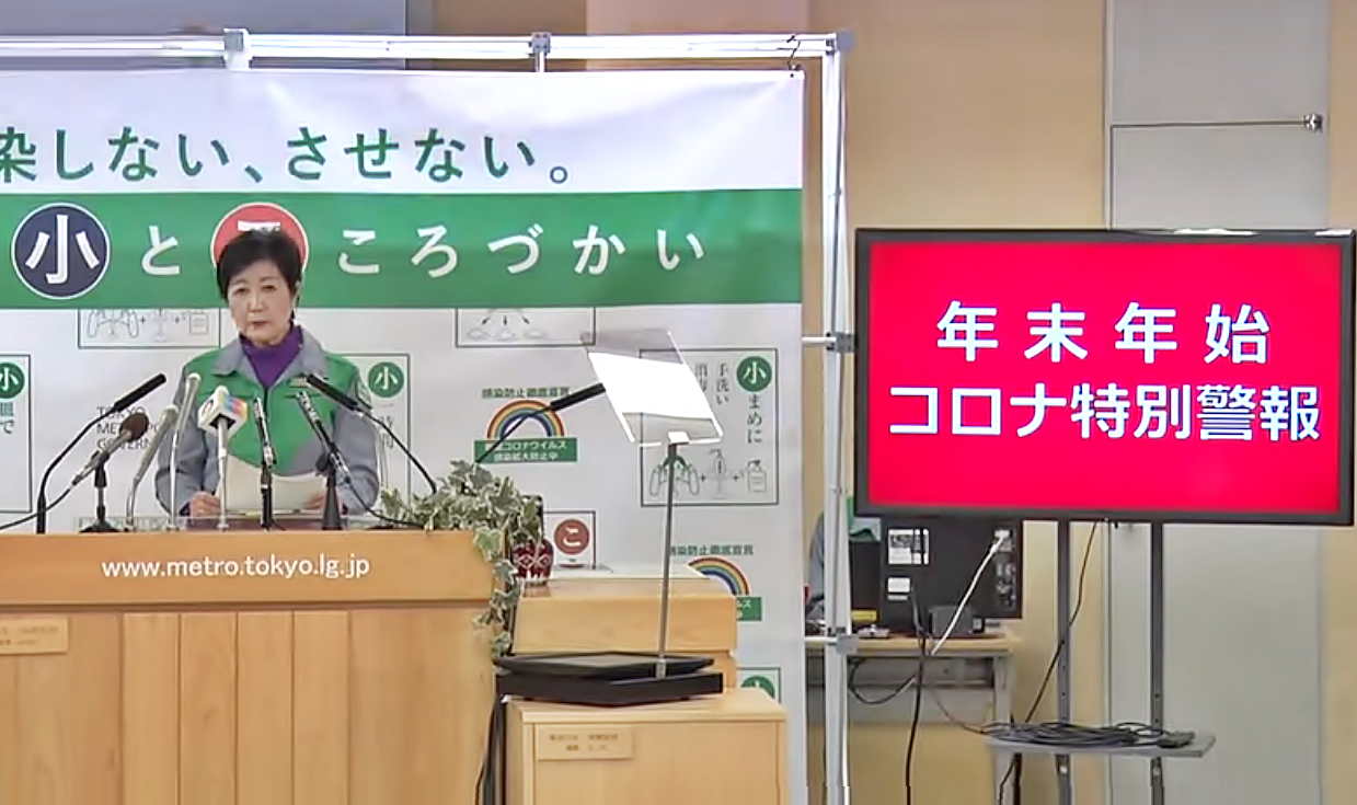 La gobernadora de Tokio, Yuriko Koike, emitió una “Alerta especial por coronavirus de Fin de Año y Año Nuevo» como parte de los esfuerzos para contener la expansión del virus.