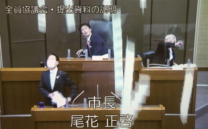 El pleno de la asamblea municipal era transmitida en directo por el canal local. El alcalde Masahiro Obana estaba explicando el contenido de sus planes para el próximo año fiscal y pudo vérsele evacuar el lugar mientras las lámparas se desprendían del techo y caían sobre el podio.