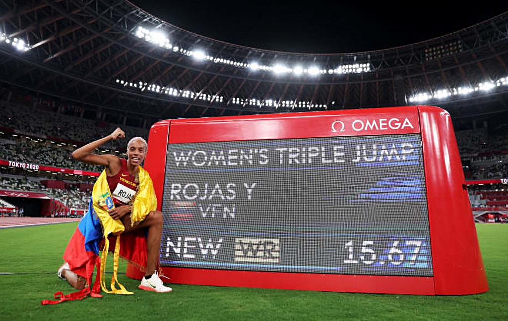 La venezolana Yulimar Rojas se coronó campeona olímpica con nueva marca mundial y olímpica de 15.67 metros en salto triple y le dio la primera medalla de oro a su país en competencia desarrollada esta noche en el Estadio Olímpico de Tokio.