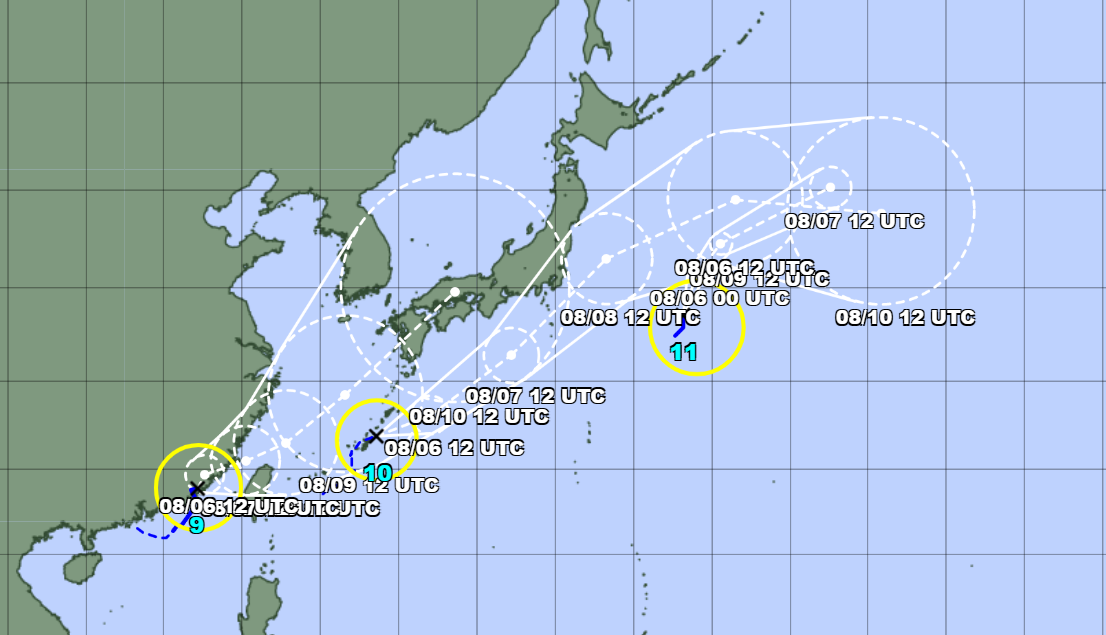 Un tercer tifón, el Nº9 también amenaza Japón. A esta hora avanza por el Estrecho de Taiwán con la posibilidad de que pase cerca de Okinawa el lunes 9 y se acerque a Kyushu el martes. (RI/IP)