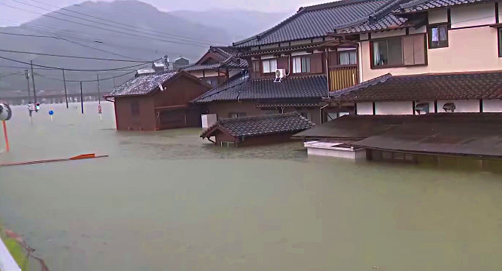 En la prefectura de Saga, el desborde del río Rokkaku que cruza la ciudad de Takeo ha causado inundaciones en las carreteras y hasta en partes de la ciudad de Kurume en Fukuoka.