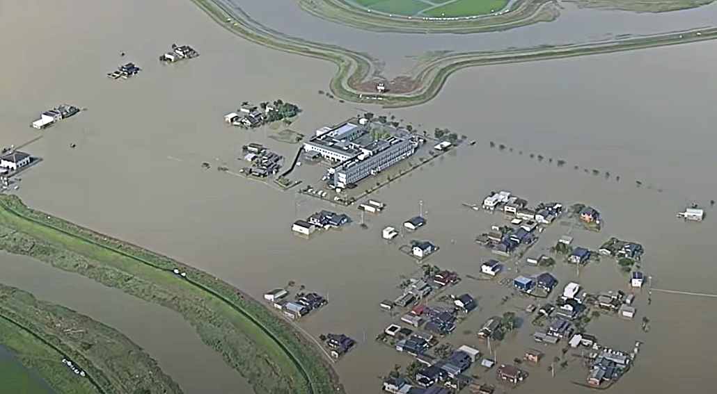 Desde la madrugada del domingo 14 los pacientes del hospital de Juntendo en la ciudad de Omachi, en Saga, tuvieron que ser trasladados a pisos superiores. El río cercano se desbordó trayendo agua fangosa que inundó hasta un metro de altura el primer piso de la instalación.