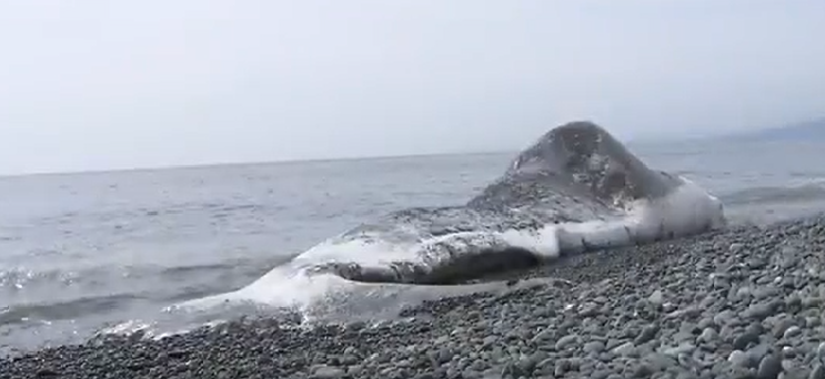 Una ballena muerta de unos 15 metros de largo fue encontrada la mañana de hoy lunes en una playa de Miyakawa en Odawara, Kanagawa.