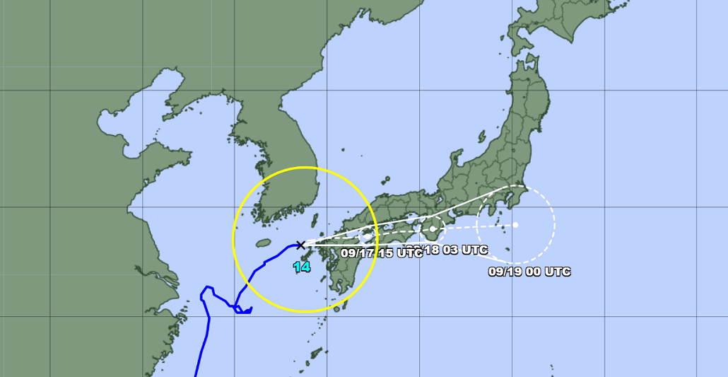 A las 11.00 horas de hoy, el tifón se encontraba a 100 km al oeste de la ciudad de Goto, prefectura de Nagasaki. Se espera que empiece a pasar sobre el norte de Kyushu en la noche de hoy provocando potentes lluvias. Luego cruzará Shikoku y Kinki. (RI)