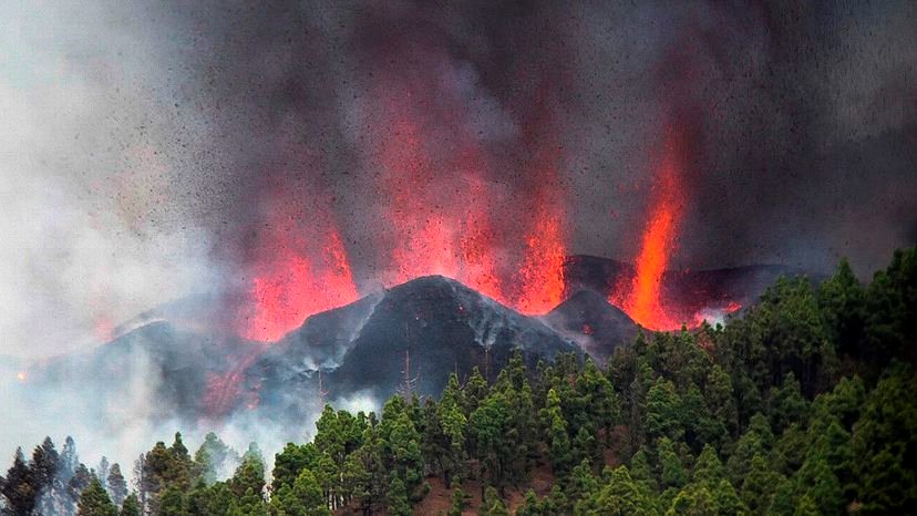 El volcán comenzó a rugir en forma de una sacudida y una fuerte explosión que generó una columna de cenizas, a la que pronto siguieron borbotones de lava elevándose decenas de metros sobre el suelo desde varias bocas eruptivas. Hasta ocho bocas alineadas en dos fisuras, han contado los expertos del Instituto Volcanológico de Canarias (Involcán).