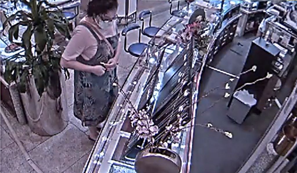 En las imágenes divulgadas por el telediario All Nippon News Network de Asahi TV se ve a la mujer intentar salir de la joyería como si no hubiera pasado nada. En la puerta fue abordada por una empleada y luego por Yukinari Fukushima, presidente de Yokohama Motomachi Creative Jewerly Hook.