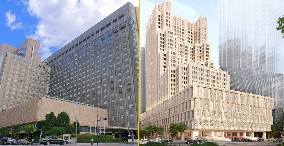 El emblemático Hotel Imperial de Tokio será reconstruido con una inversión 2.000 millones de dólares con diseño que asemeja a un lujoso palacio con un exterior de piedra color beige y conservando su entrada principal frente al parque Hibiya.
