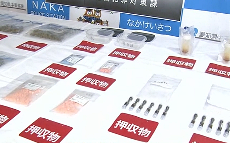 La policía de Aichi arrestó a dos hombres identificados como Kai Takezawa de 20 años y Sakura Iwami de 22 años por posesión de drogas.