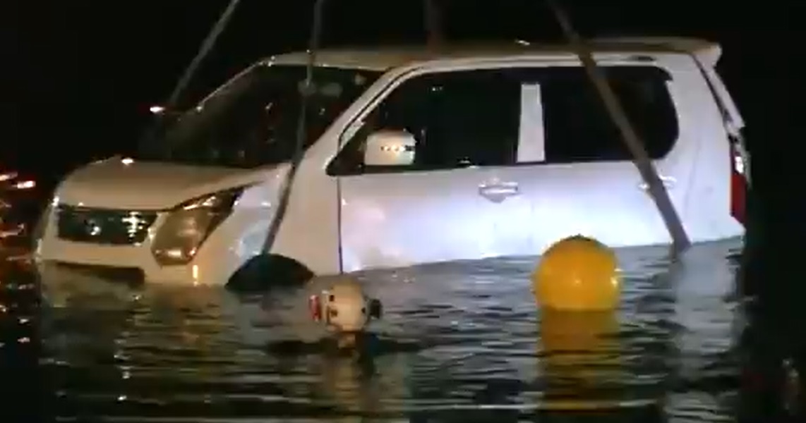 El coche, de acuerdo con un testigo, ingresó a un estacionamiento cerca de un muelle en la ciudad de Shiraoi, retrocedió y de pronto avanzó en dirección al mar, donde se hundió.