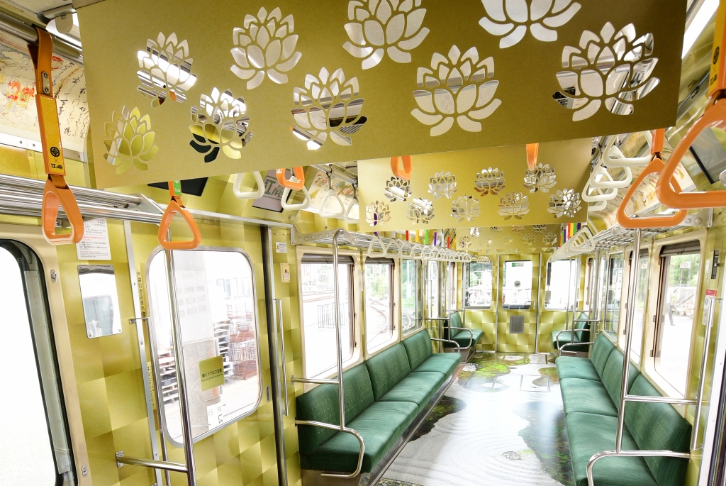 Desde el pasado 8 de octubre circula entre las estaciones de Kamakura y Fujisawa el “Tren Kannon” que consta de dos vagones con un interior extraordinariamente decorado. La pared y puertas del vagón están forradas en pan de oro y el piso representa un jardín zen. El techo lleva imágenes de la flor de loto.
