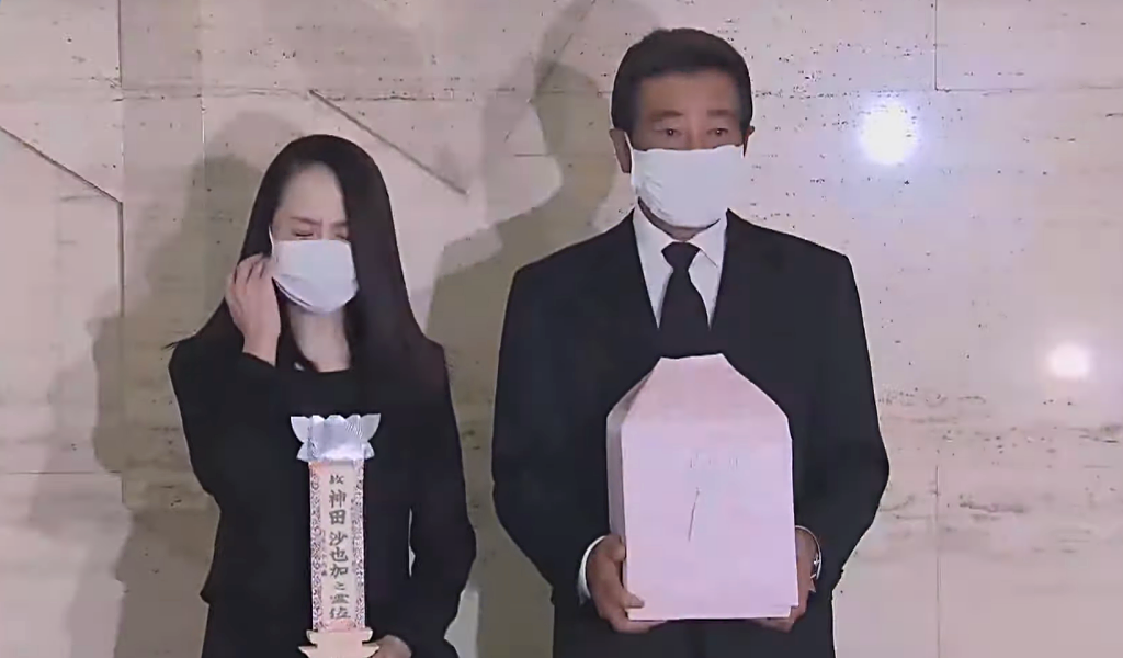 El padre apareció llevando entre sus manos la caja con las cenizas de su hija, mientras la madre, Seiko, llevaba la tabla conmemorativa «ihai» con el nombre de Sayaka. Ambos expresaron ante los medios de comunicación el agradecimiento y apoyo recibidos hasta este momento.