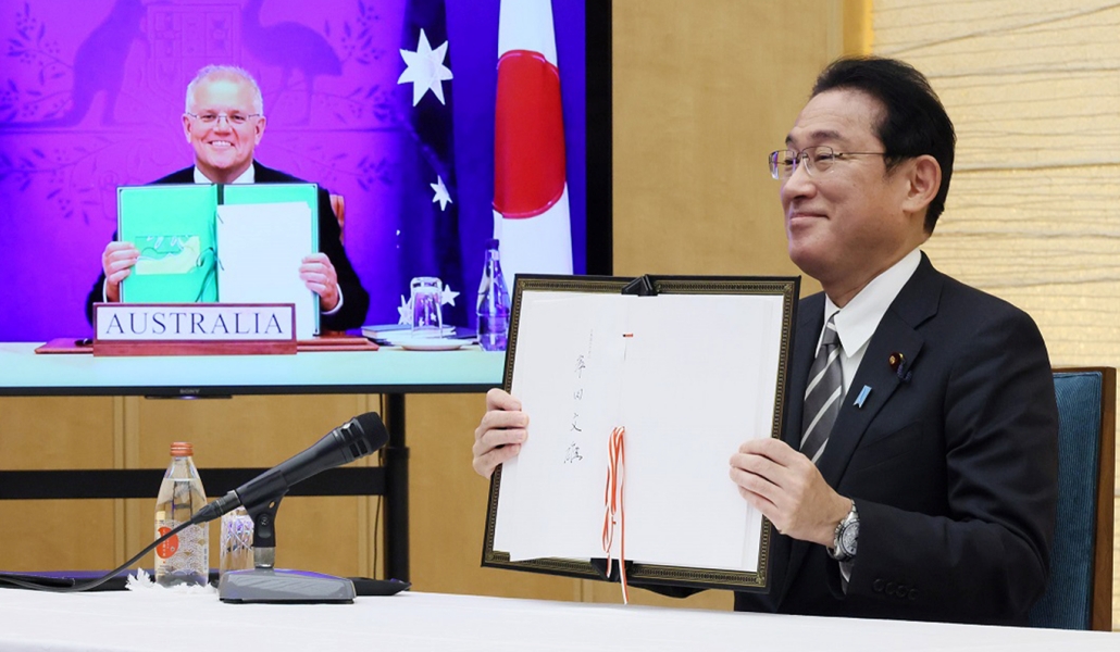 El llamado Acuerdo de Acceso Recíproco (RAA) fue suscrito en una reunión virtual entre el primer ministro Fumio Kishida y su homólogo australiano, Scott Morrison. Con esto se facilitará el despliegue más rápido de las Fuerzas de Autodefensa japonesas y de las Fuerzas de Defensa de Australia aliviando las restricciones sobre el transporte de armas y suministros para ejercicios militares y en caso de desastre.