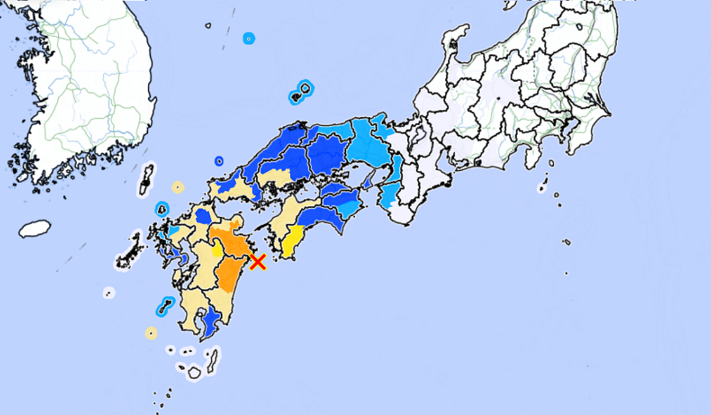 El sismo se sintió con intensidad 5+ en las prefecturas de Oita y Miyazaki y 5- en Kochi, mientras que en Saga, Kumamoto, Fukuoka, Ehime y Hiroshima fue de 4 grados y 3 grados en Kagoshima y Nagasaki. Citando fuentes locales, NHK dijo que el movimiento «fue largo, casi 30 segundos».