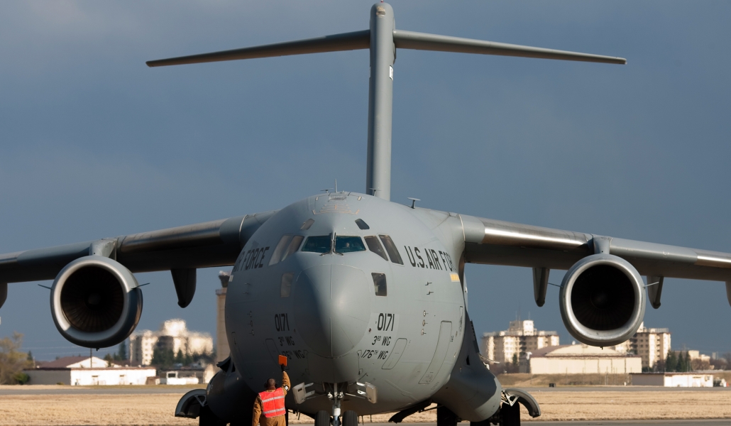 Según los datos disponibles divulgados por Interfax, un avión de transporte militar estadounidense C-17 Globemaster III despegó con 38 toneladas de carga de la base aérea de Yokota, en Tokio, ante un grupo de reporteros, además del diplomáticos de EEUU y Ucrania y del Ministerio de Defensa japonés.