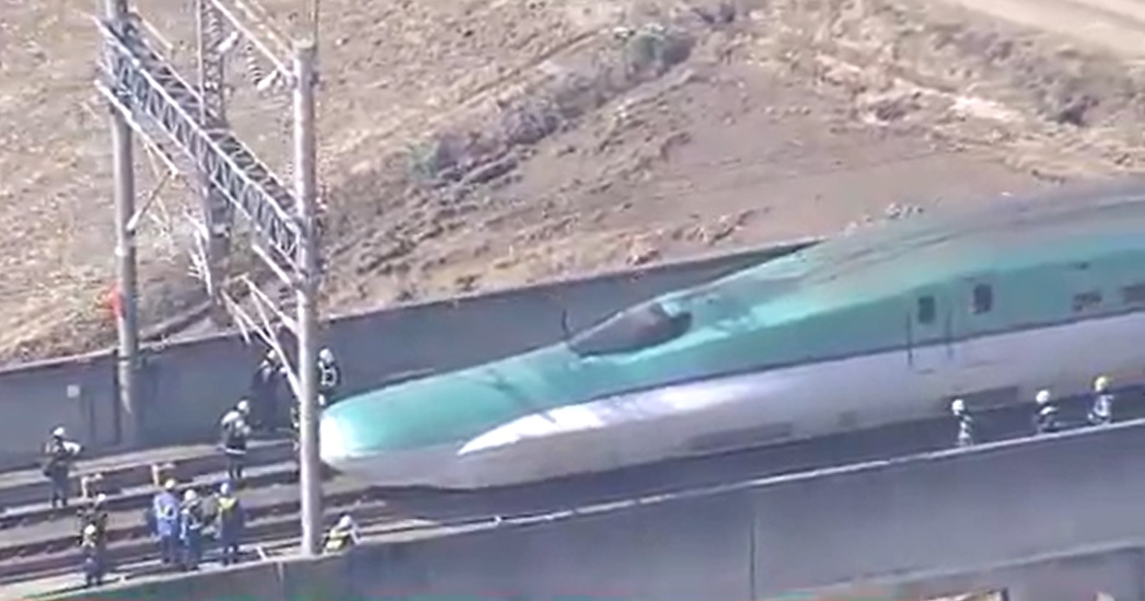 16 de los 17 vagones del tren de la línea Tohoku Shinkansen se descarrilaron. Por suerte, nadie resultó herido.