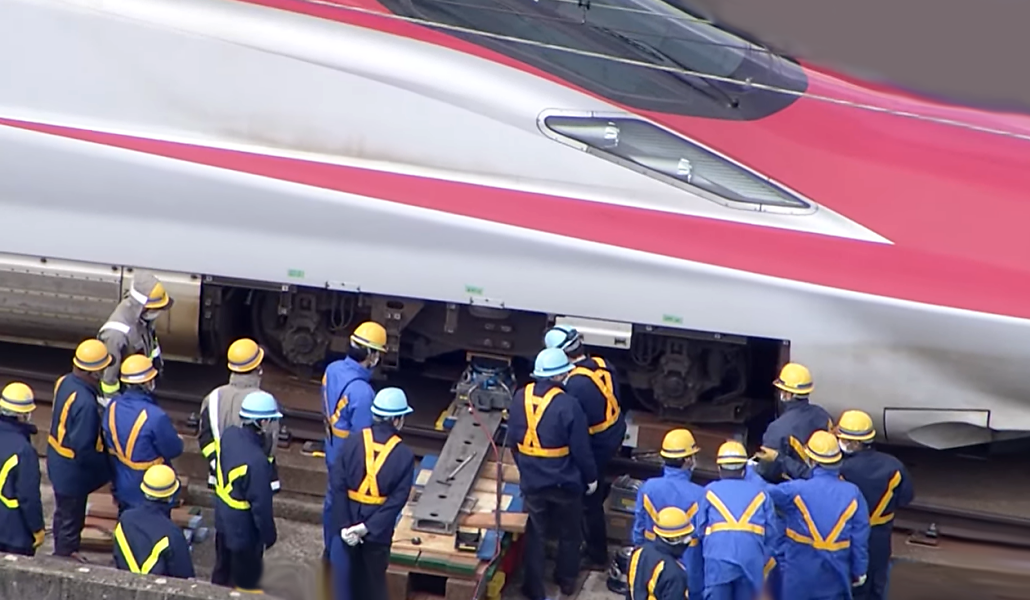 JR East comenzó a trabajar este domingo en el retiro del tren bala que se descarriló por el terremoto del pasado miércoles por la noche en la región de Tohoku. Un potente sismo de 6+ remeció violentamente las prefecturas de Miyagi y Fukushima y 16 de los 17 vagones del shinkansen quedaron inclinados sobre un lado del riel.