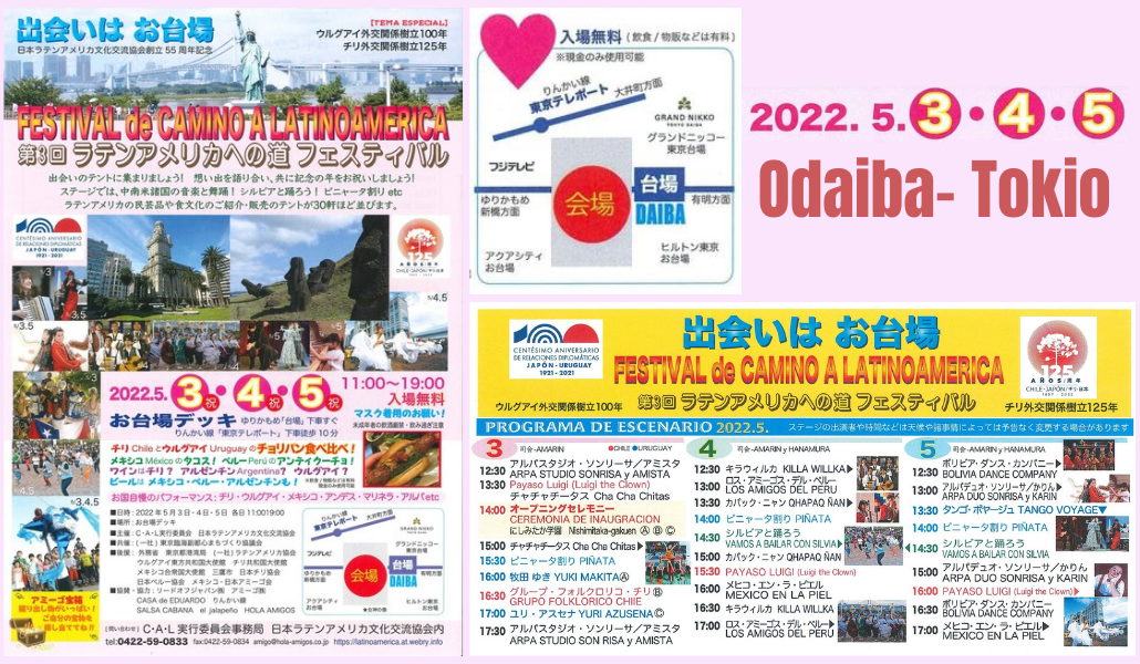 Descripción: El festival se realiza para mostrar y disfrutar de la cultura de América Latina. En esta edición, se celebra el «100 aniversario del establecimiento de relaciones diplomáticas entre Japón y Uruguay» y el «125 aniversario del establecimiento de relaciones diplomáticas entre Japón y Chile».