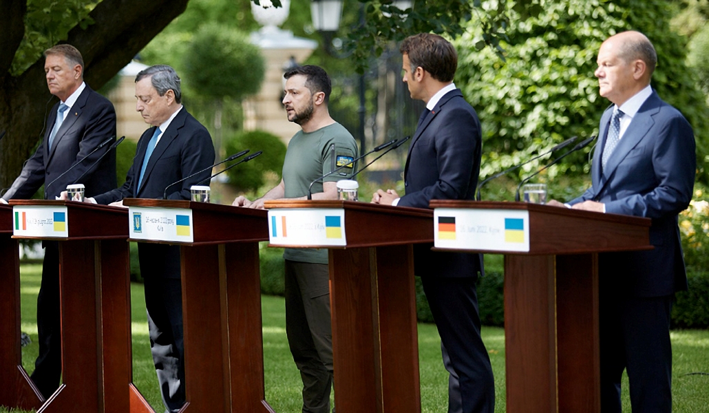 Esta es la primera vez que los tres líderes de Francia, Alemania e Italia visitan Ucrania después de la invasión de Rusia. En la reunión, los mandatarios y Zelensky acordaron establecer un cronograma para que Ucrania se una a la Unión Europea (UE) pidiendo para este país el estatus de candidato «inmediato».