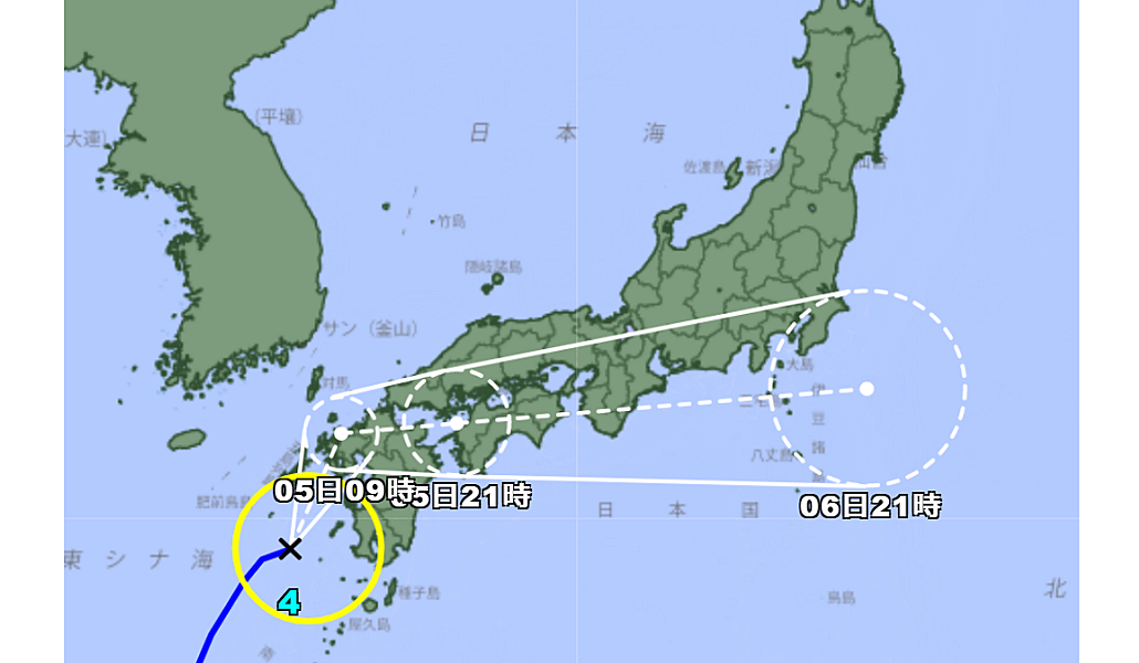 El tifón Nº4, o Aere, se acerca al archipiélago japonés y se espera que ingrese a la isla principal por la región de Kyushu en la madrugada de hoy martes para atravesar el país hacia el Pacífico antes de convertirse en un ciclón tropical en la mañana del 6 de julio.