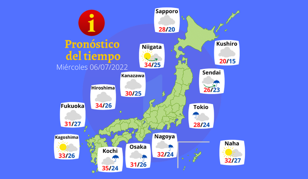 – Lluvia en gran parte de Nishinihon y Higashinihon. Las lluvias serán fuertes frente al mar Pacífico.