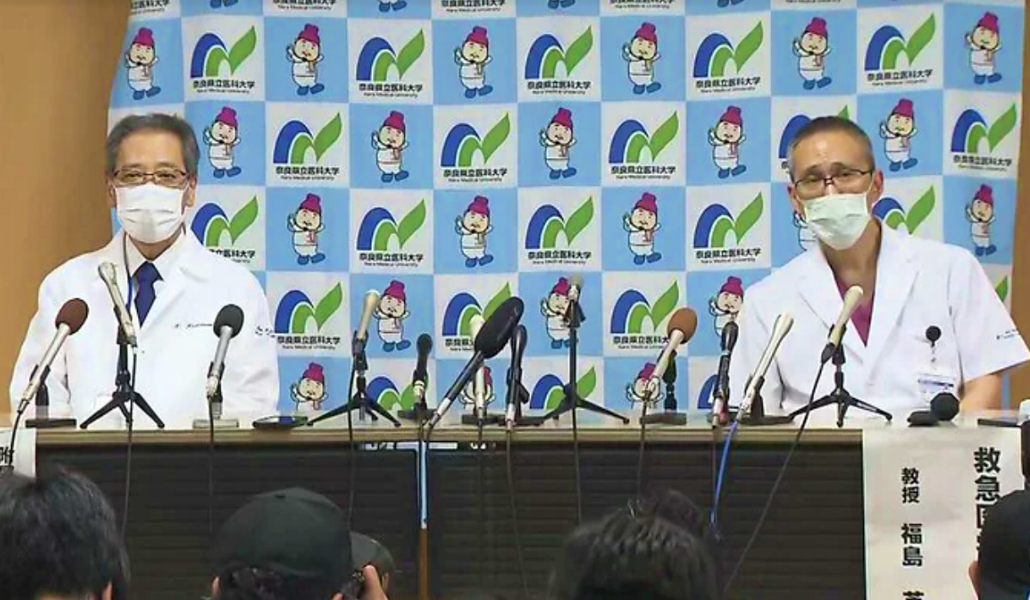 El Departamento de Bomberos de Nara recibió el aviso del ataque al 119 a las 11:31 horas. Una ambulancia llegó al lugar a las 11:37. Luego fue trasladado en un helicóptero médico y llegó al hospital a las 12.20 horas con un paro cardiorrespiratorio.