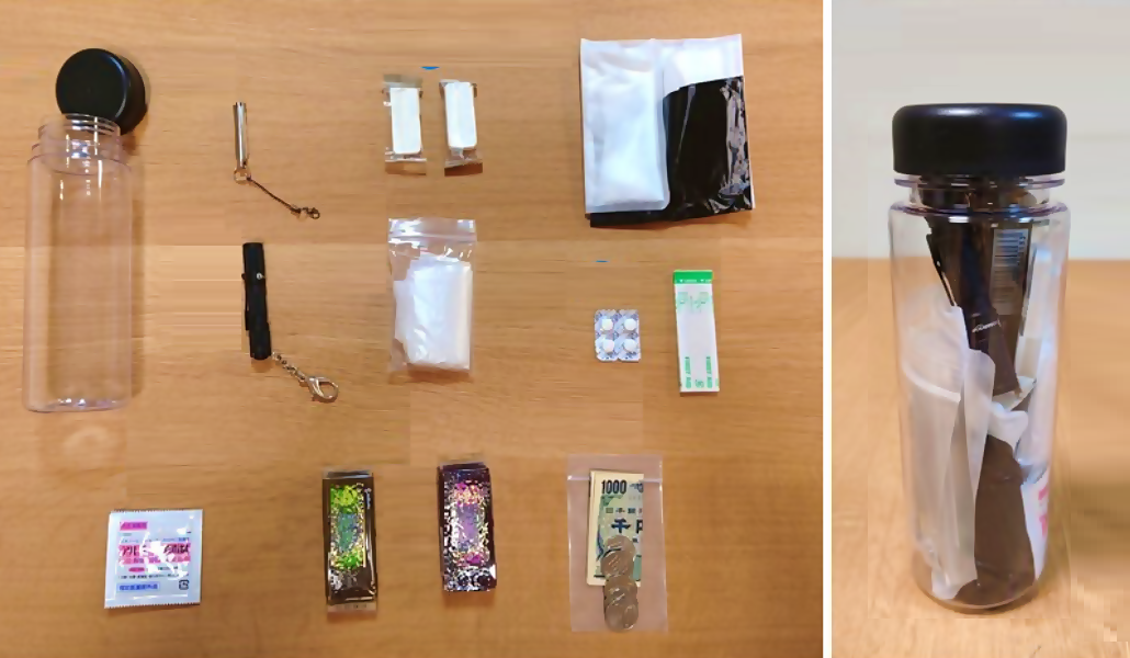 «No sabemos cuándo y dónde ocurrirán desastres de algún tipo. Para tales casos, es posible llevar consigo una botella, que puede ser de agua, con varios artículos útiles. Dado que se puede guardar de forma compacta, no resultará molesto incluso si la ponemos en nuestra bolsa o mochila de diario mejorando así nuestra capacidad de respuesta a los desastres», dijo una publicación de la policía tokiota en su cuenta en Twitter.