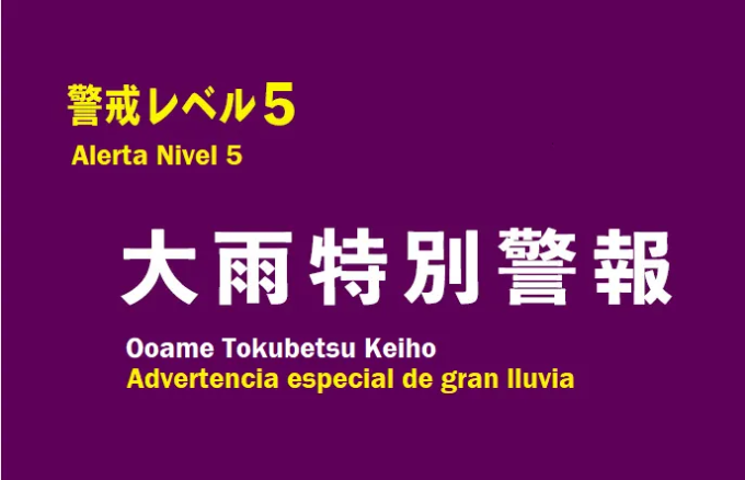 Unas 65.000 personas y 27.000 hogares en las prefecturas de Aomori, Iwate, Yamagata y Niigata recibieron a las 18.30 horas de hoy una orden de evacuación (Hinan shiji) de nivel 4 en la escala de 5 por inundaciones a causa de torrenciales lluvias.