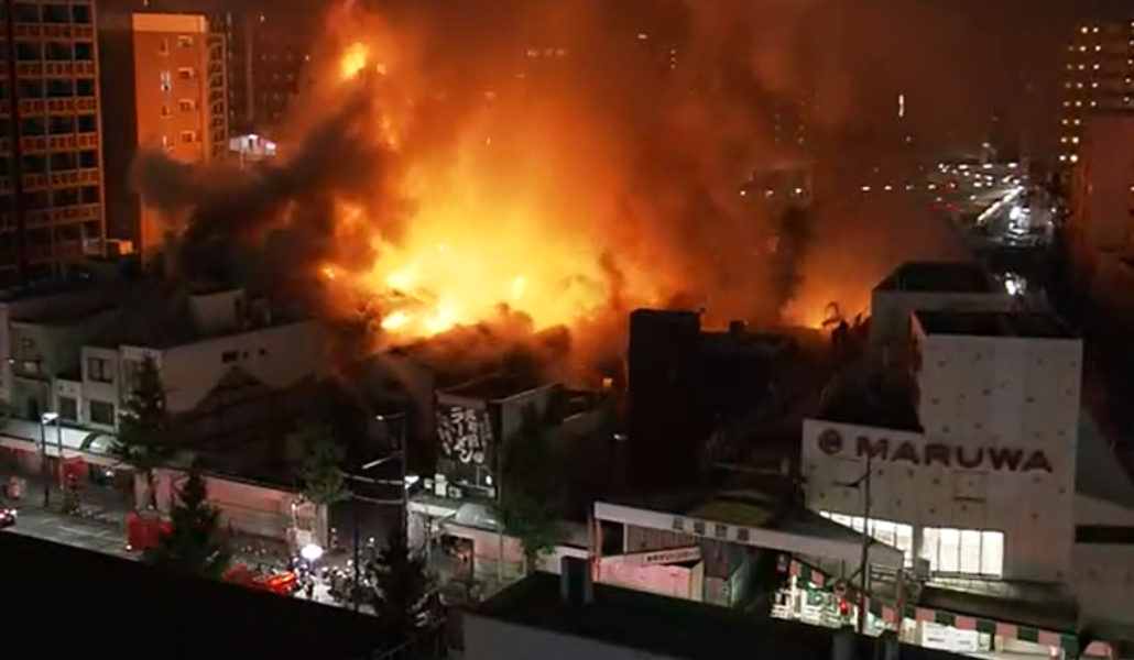 Un incendio de grandes proporciones estalló hoy a las 20.55 horas en el Mercado de Tanga en el distrito de Kokura-Kita en Kitakyushu, en la prefectura de Fukuoka. Esta zona comercial tiene una antigüedad de más de cien años en funcionamiento.
