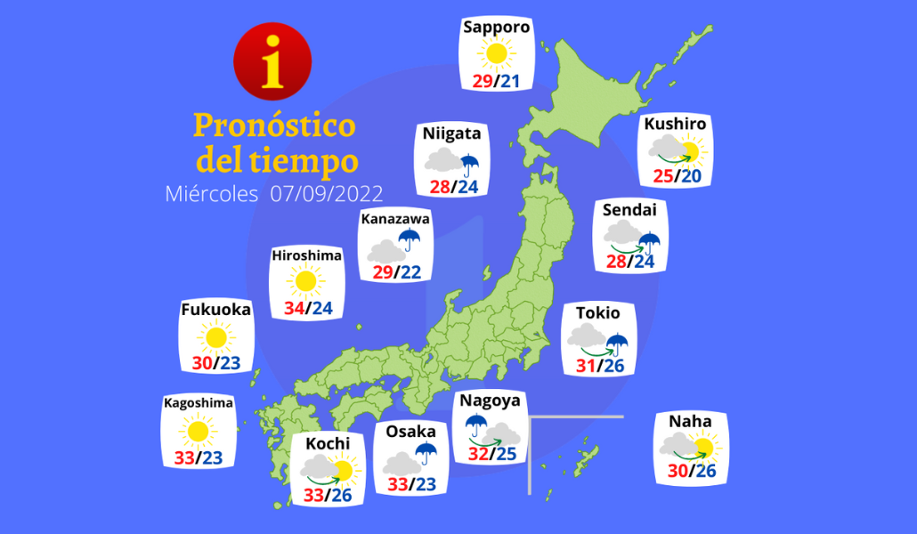 – Despejado en Kyushu, Chugoku y Shikoku. Las temperaturas serán altas en estas regiones.