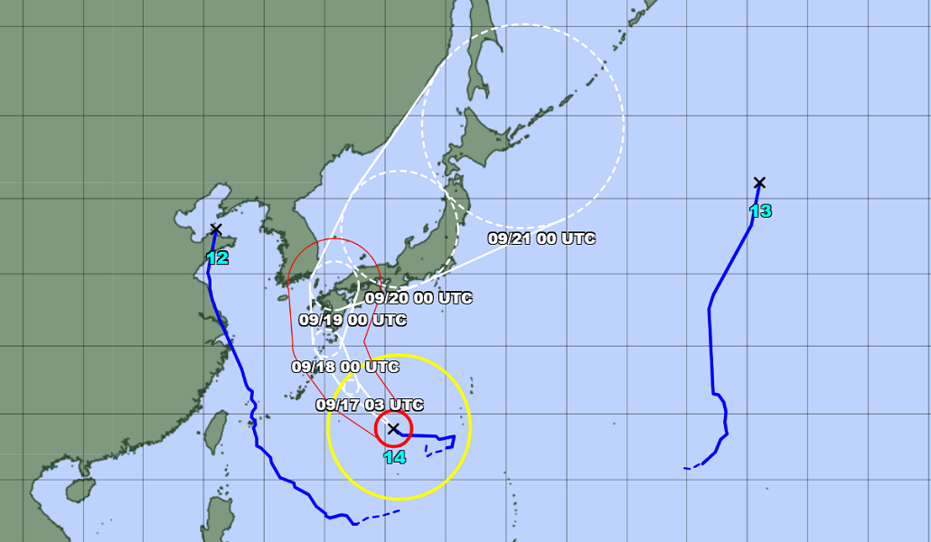 El gran y muy fuerte tifón Nº14 se abrió paso hoy sobre mar al sur de Japón, mientras la Agencia Meteorológica advirtió que puede acercarse a la región de Kyushu este lunes 19 de septiembre y a partir de ahí atravesar todo el archipiélago japonés.