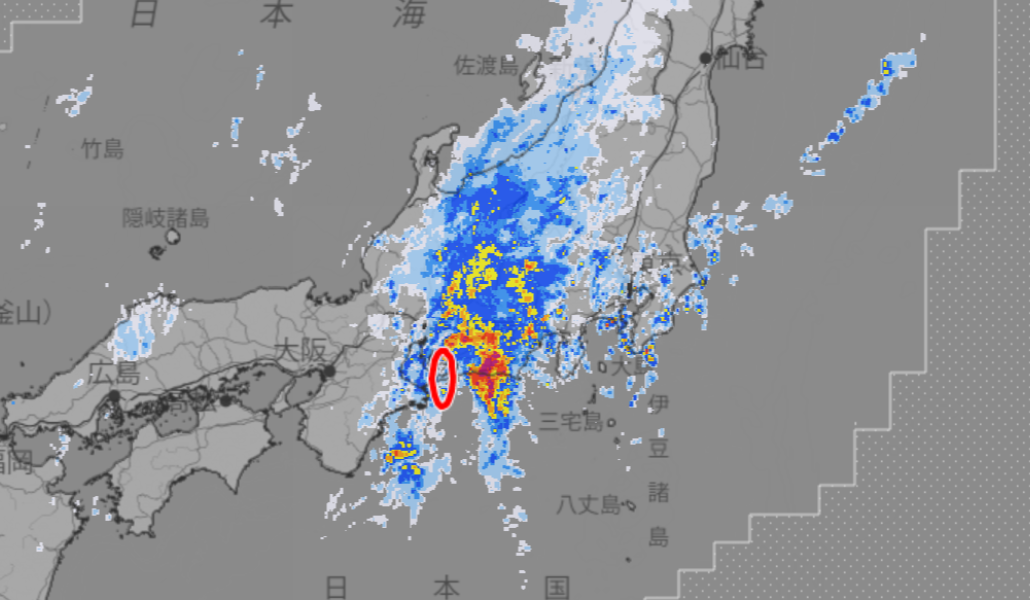 La Agencia Meteorológica de Japón anunció a las 17.39 horas de hoy que se ha producido una franja de lluvia lineal en el este de la prefectura de Aichi.