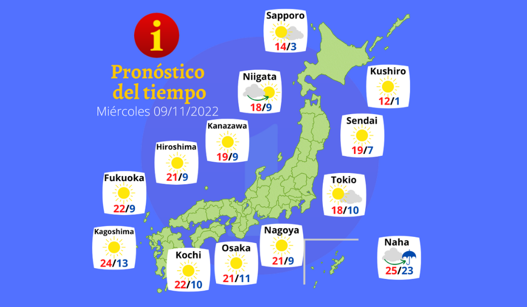 – Despejado en Nishinihon y Higashinihon.