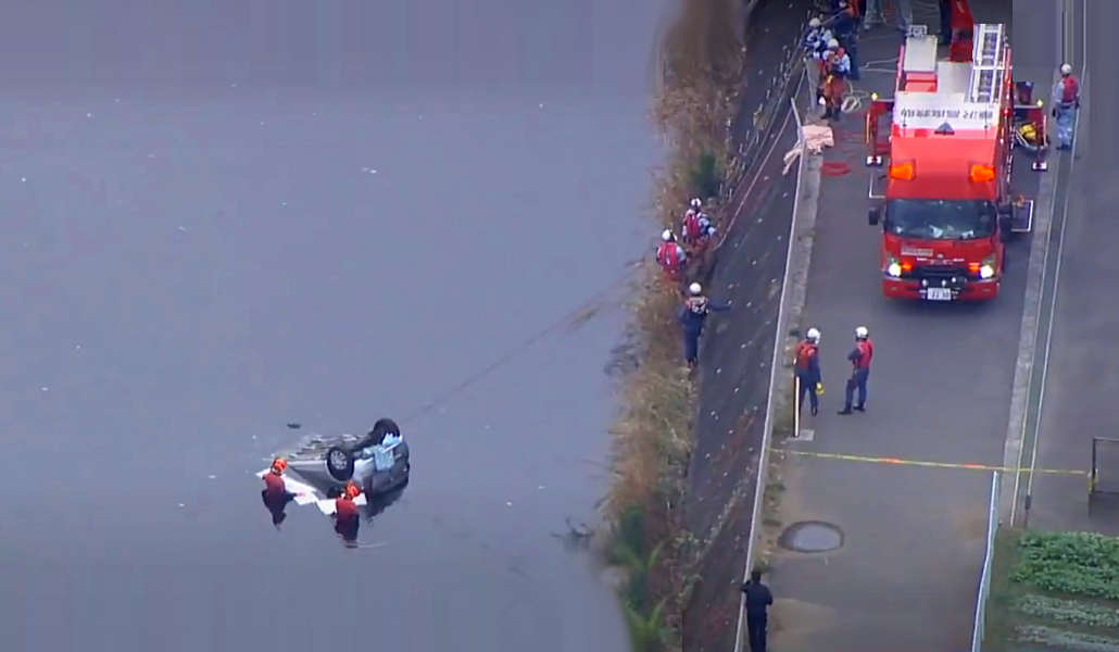 Según la policía, una llamada al teléfono 110 de emergencias reportó que un automóvil plateado había caído al río Sakai que atraviesa la ciudad de Fujisawa.