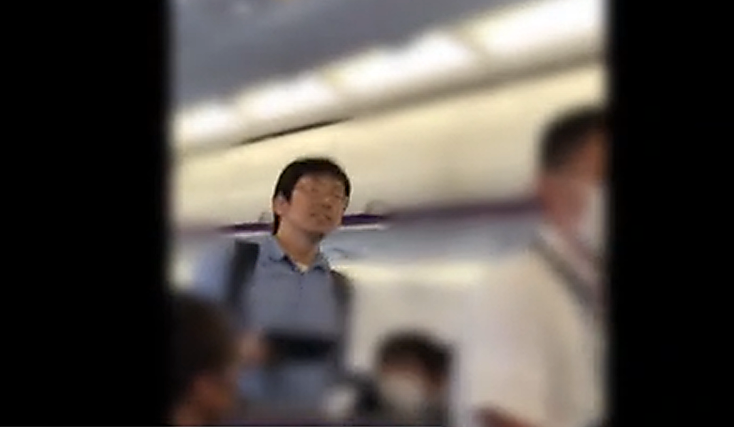 En septiembre de 2020, cuando la pandemia por coronavirus provocaba los mayores estragos en la salud de las personas, Okuno, un exempleado universitario, abordó un avión sin mascarilla y su resistencia violenta obligó a un aterrizaje de emergencia.