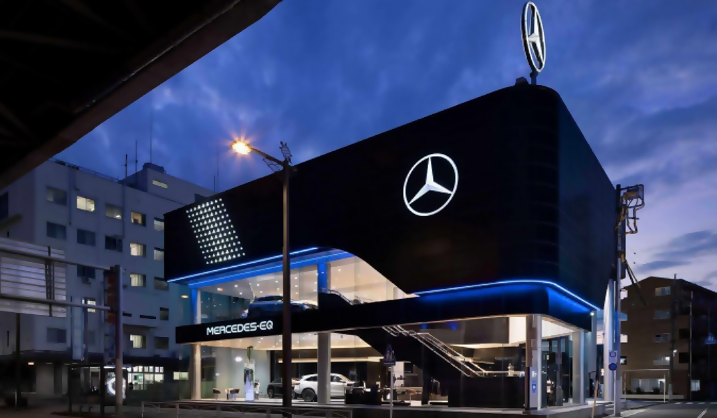 La tienda, llamada Mercedes EQ – Yokohama, abrió el martes 6 de diciembre en un edificio negro de dos pisos, a tres minutos de la estación Higashi Kanagawa, sobre la carretera nacional Nº15.