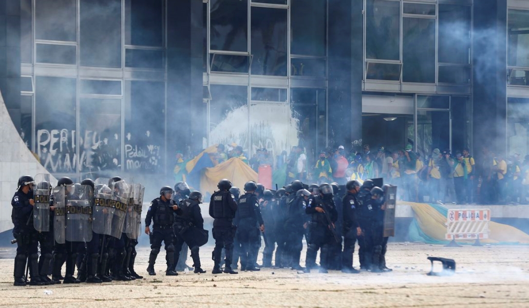 La invasión comenzó después de que se rompiera la barrera formada por la policía militar en la Esplanada dos Ministérios, que estaba cerrada, informó la Agencia Brasil. El Congreso Nacional fue el primero en ser invadido, con manifestantes ocupando la rampa y lanzando cohetes. Luego rompieron vidrios en el Salón Negro del Congreso y dañaron el piso de la Cámara.