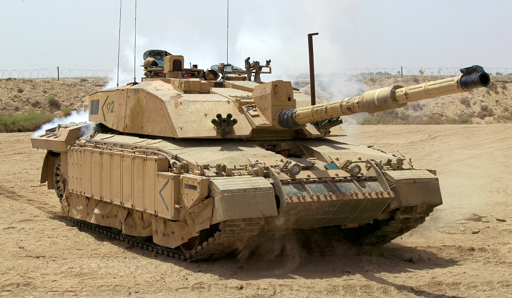 El tanque Challenger 2 ha estado en servicio con el ejército británico desde 1994. Pesa 62,5 toneladas y está armado con un cañón estriado de 120 mm y un cañón de cadena de 7,62 mm.