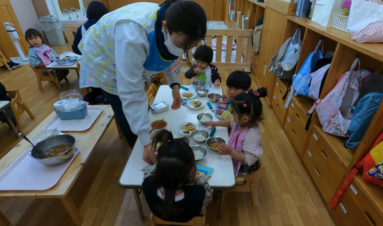 En una guardería en el distrito de Setagaya, Tokio, sus trabajadores deben usar mascarillas cuando están con los niños.
