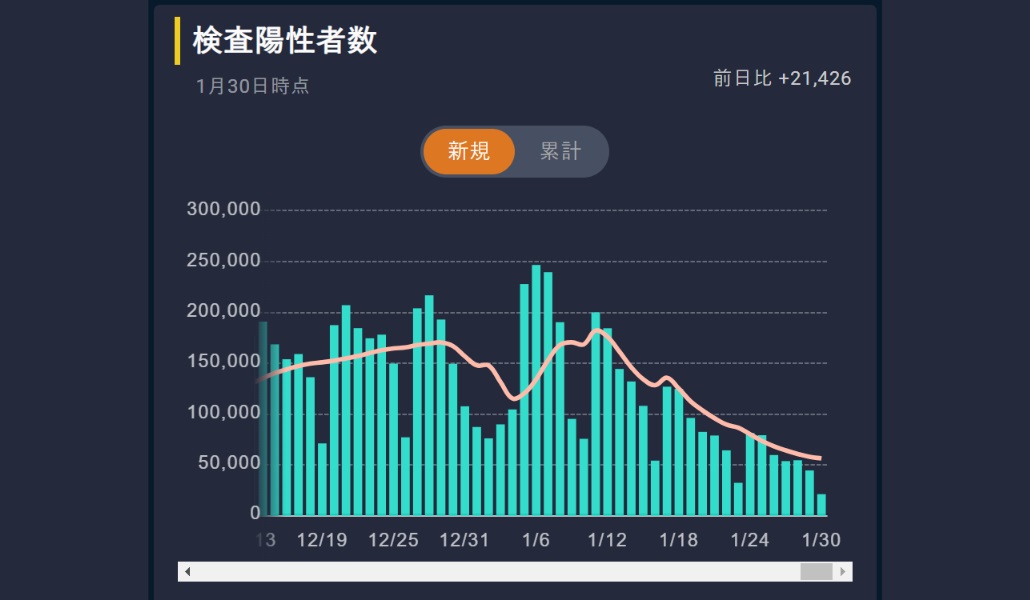 Japón registró hoy lunes 30 de enero 21.426 nuevos casos de coronavirus y 206 muertos, según los datos del Ministerio de Salud, Trabajo y Bienestar Social.