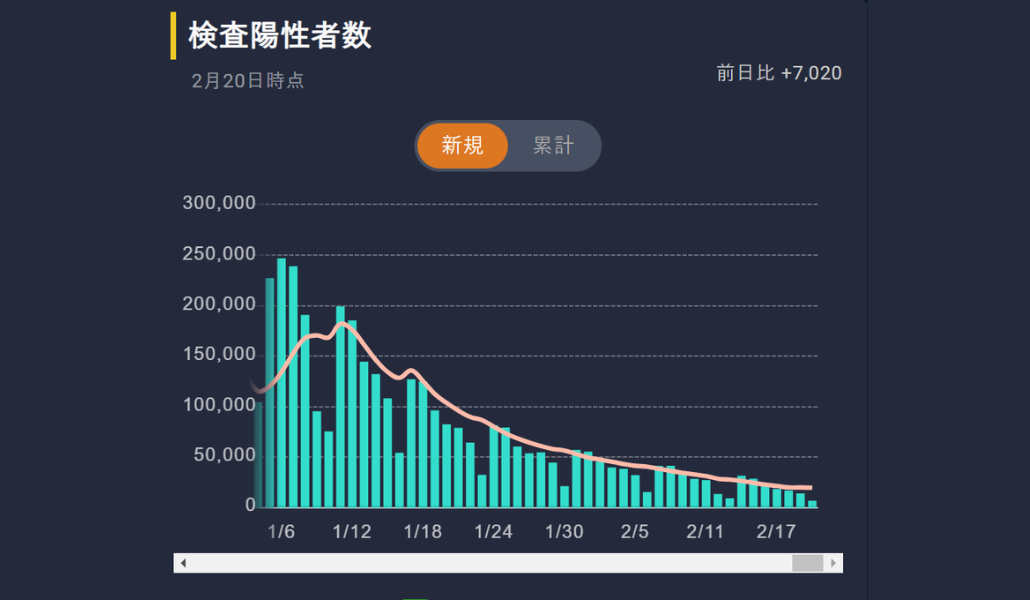 Japón registró hoy lunes 20 de febrero 7.020 nuevos casos de coronavirus y 51 muertos, según los datos del Ministerio de Salud, Trabajo y Bienestar Social.