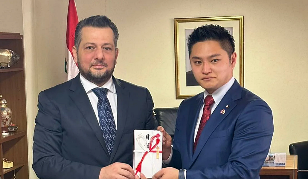 Najib Erzi, embajador de Siria, recibió la ayuda de Aizawa en una significativa ceremonia en Tokio en la que también estuvieron presentes Kenichi Ota, secretario de la embajada siria, y Akira Koike, gerente de Recursos Humanos de Aizawa Corporation.