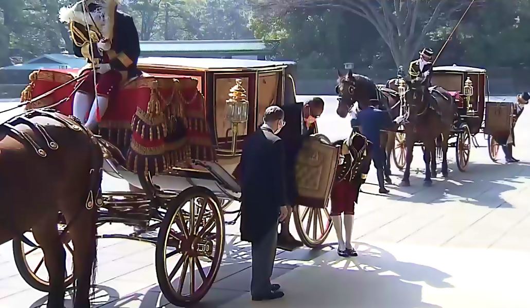 El primer jefe de misión en utilizar el carruaje Imperial fue el Embajador de Fiji quien a las 10.00 horas hizo un viaje de aproximadamente 1,5 kilómetros entre la estación de Tokio y el Palacio Imperial a bordo de un carruaje de madera lacada y decorado con los sellos del crisantemo.