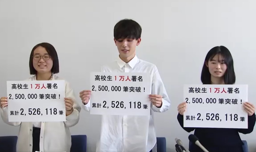 Por su parte, Nobuto Hirano, de 76 años, supervisor la campaña, destacó el hecho de que las firmas correspondan exclusivamente a estudiantes de preparatoria.
