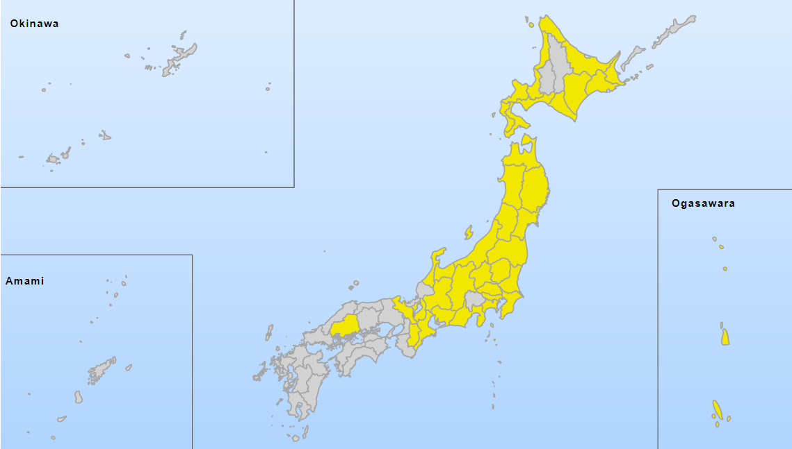 La agencia dijo que a pesar de la alta presión proveniente del oeste, que traerá sol desde Kyushi a Kanto, se teme que la inestabilidad atmosférica cambie las condiciones del clima en Kanto alrededor del mediodía.