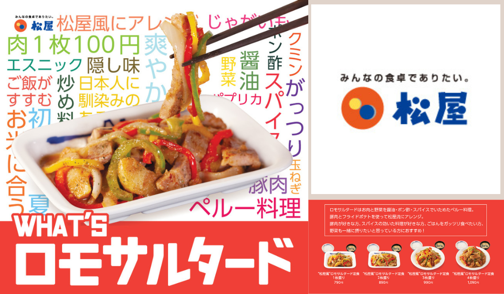 «Es comida peruana», dice Matsuya en su aviso de promoción y explica que el platillo es un lomo saltado, pero al estilo Matsuya. Está preparado con carne de cerdo y verduras aderezado con salsa de soya y ponzu, además de papas sancochadas.