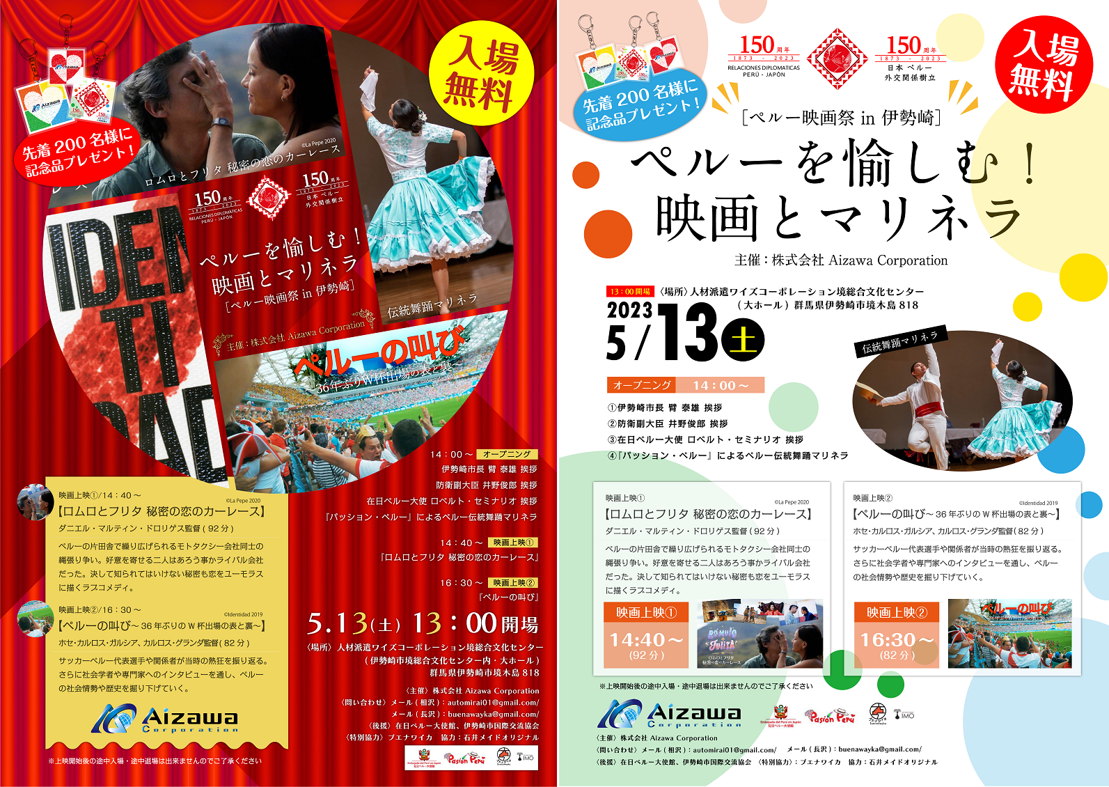 Es un evento de cine peruano organizado por Aizawa Corporation en el marco de las celebraciones de los 150 Años de Relaciones Diplomáticas entre Perú y Japón y contará con la presencia especial del embajador del Perú en Japón, Roberto Seminario, el alcalde de Isesaki, Yasuo Hiji, además de los alcaldes de las ciudades de Oizumi, Tamamura y regidores de varias comunas.